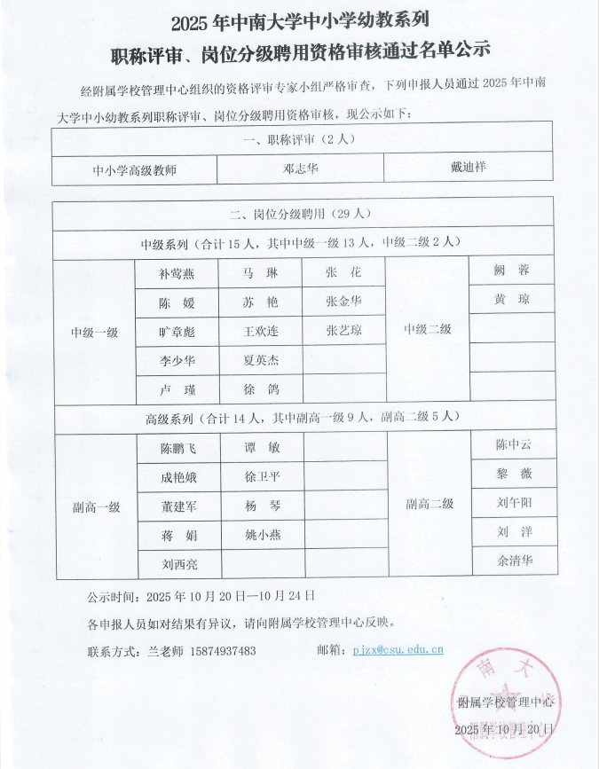 附件:2025年中小学幼教系列职称评审与岗位分级聘用资格审核一览表